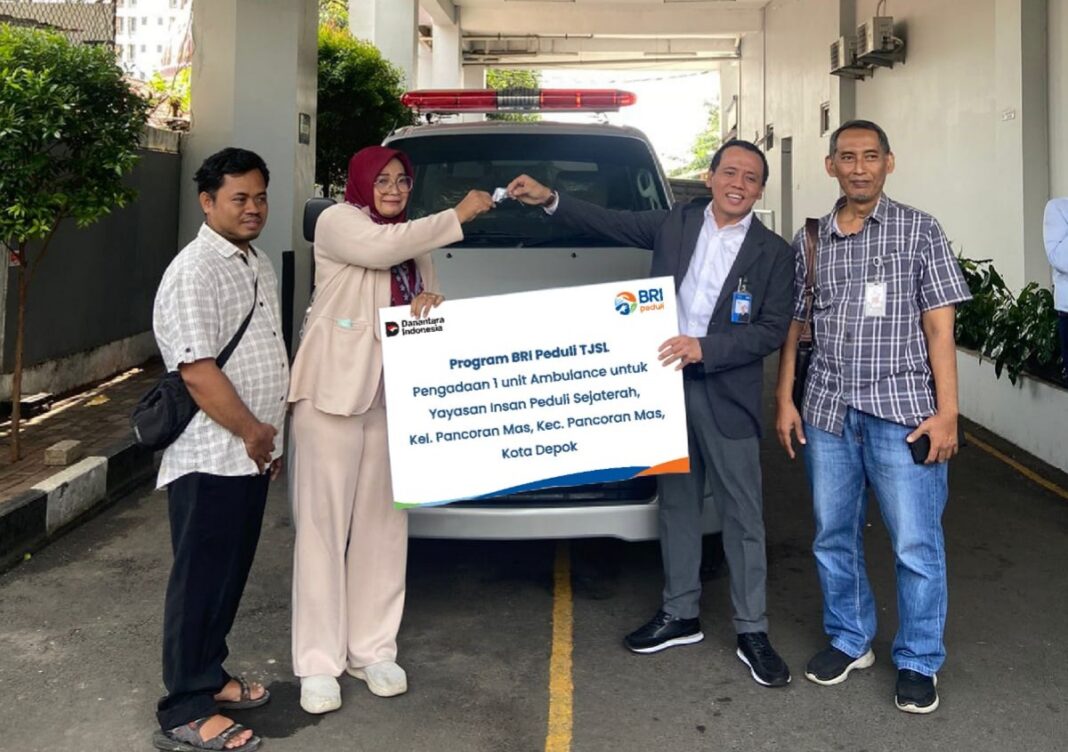 Bank Rakyat Indonesia (BRI) Kantor Cabang (KC) Depok menyalurkan bantuan program Tanggung Jawab Sosial Lingkungan (TJSL) berupa Ambulance ke Yayasan Insan Peduli Sejahterah yang berlokasi di Kelurahan/Kecamatan Pancoranmas, Kota Depok.