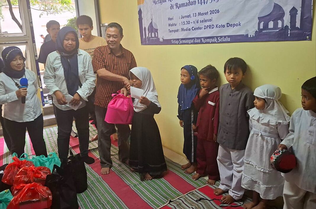 Berbagi keberkahan di bulan Ramadan, Wartawan Media Center DPRD Kota Depok menggelar santunan anak yatim piatu dan buka puasa bersama pada Jumat (13/3/2026).