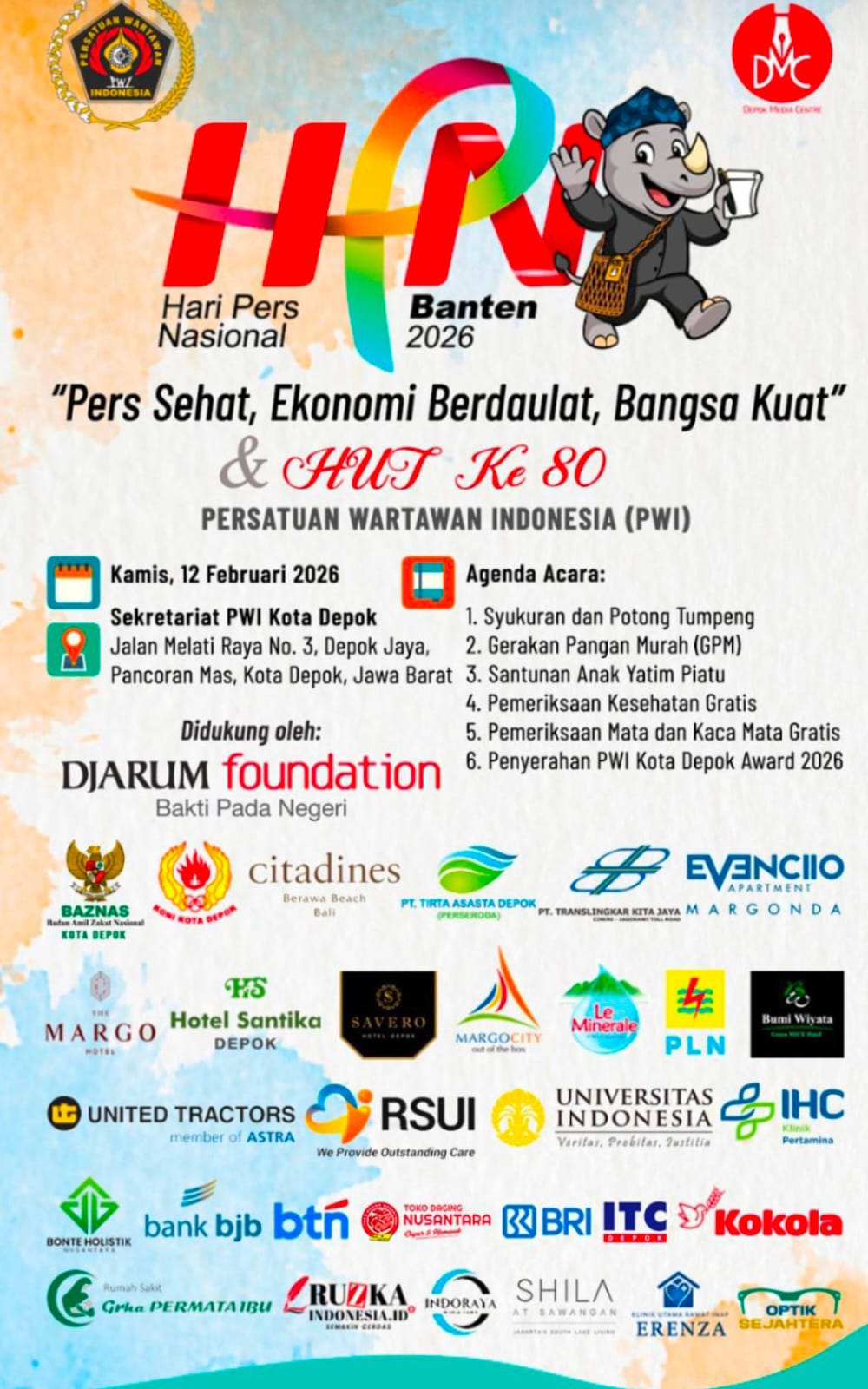 “PWI Kota Depok akan selalu menjadikan kebermanfaat bagi wartawan dan masyarakat. Gelaran HPN 2026 PWI Kota Depok sesuai tema Pers Sehat, Ekonomi Berdaulat, Bangsa Kuat, PWI Kota Depok,” jelasnya.