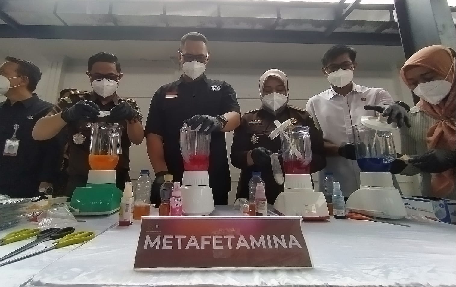 “Senjata tajam dipotong menggunakan mesin hingga tidak lagi berbentuk. Narkotika dan obat-obatan, dibakar hingga hancur serta diblender dengan campuran tinta printer dan cairan kimia agar tidak bisa disalahgunakan,” terangnya.